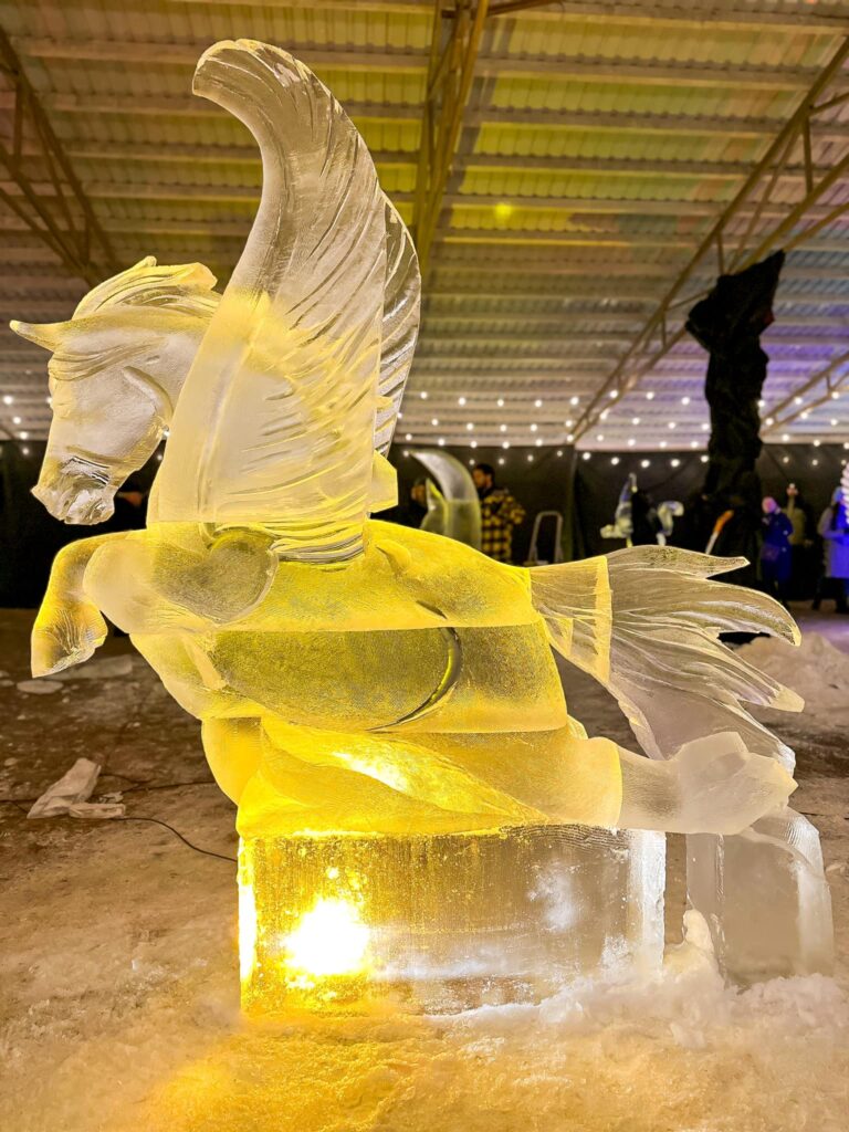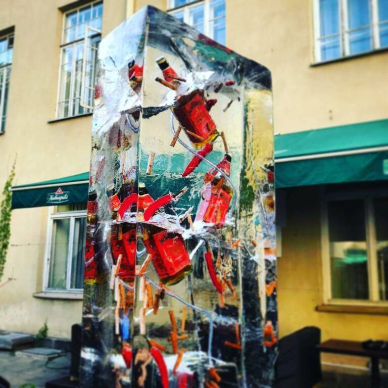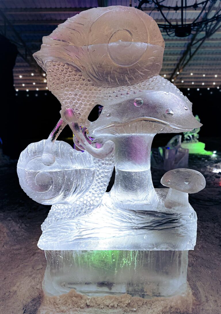 Specialiai gėrimams pritaikytas ledo stikliukas. Kiekvienas stikliukas pagamintasiš gryno ledo, todėl gėrimas išlieka šaltas ir gaivus. Be praktinės funkcijos, jie turi ir simbolinę prasmę: tradicija sako, kad išgėrus stikliuką jį galima mesti į žemę – ledo šukės nešą laimę.